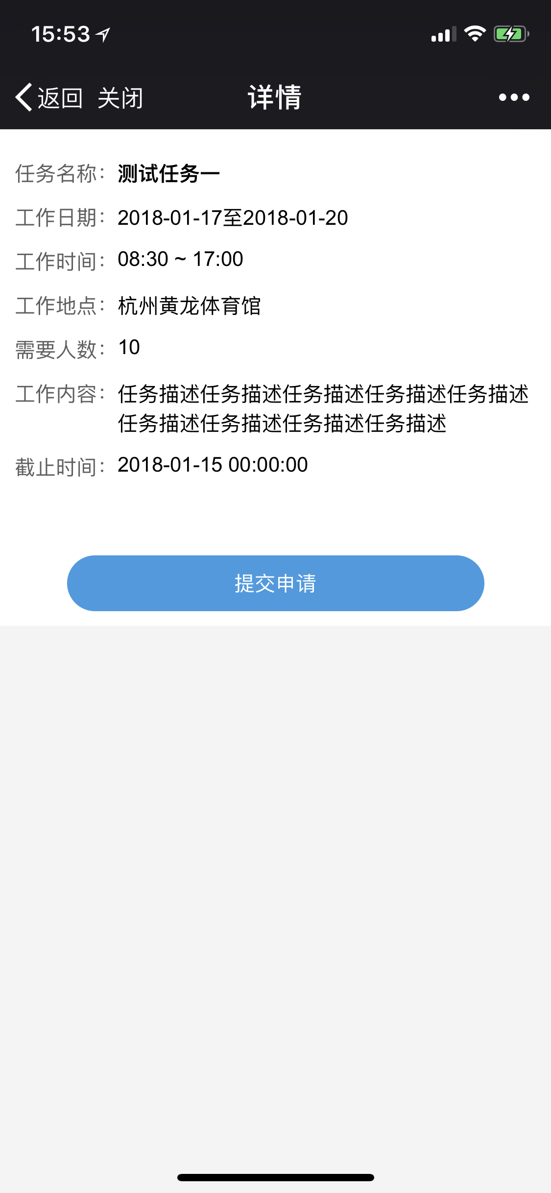 当有可申请任务的时候会出现在此页面(任务通过后台发布)
