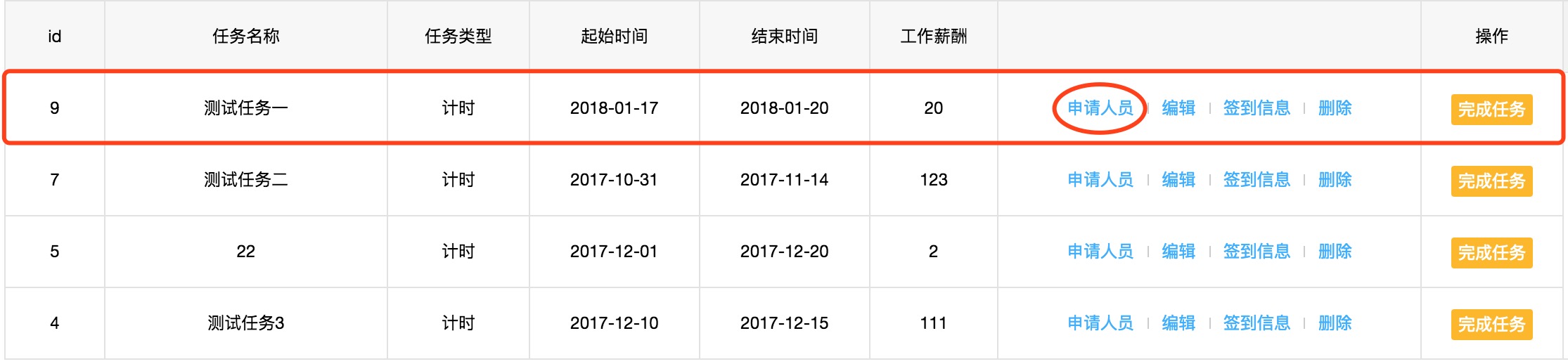 注册审核通过的人员有资格去申请任务,当前任务的待审核人员信息,通过当前任务列表的操作栏进入审核页面